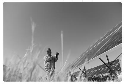 大唐青海能源开发有限公司工作人员在青海省海南藏族自治州共和县塔拉滩光伏电站巡检。记者 张龙 摄